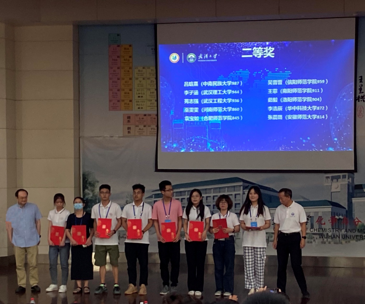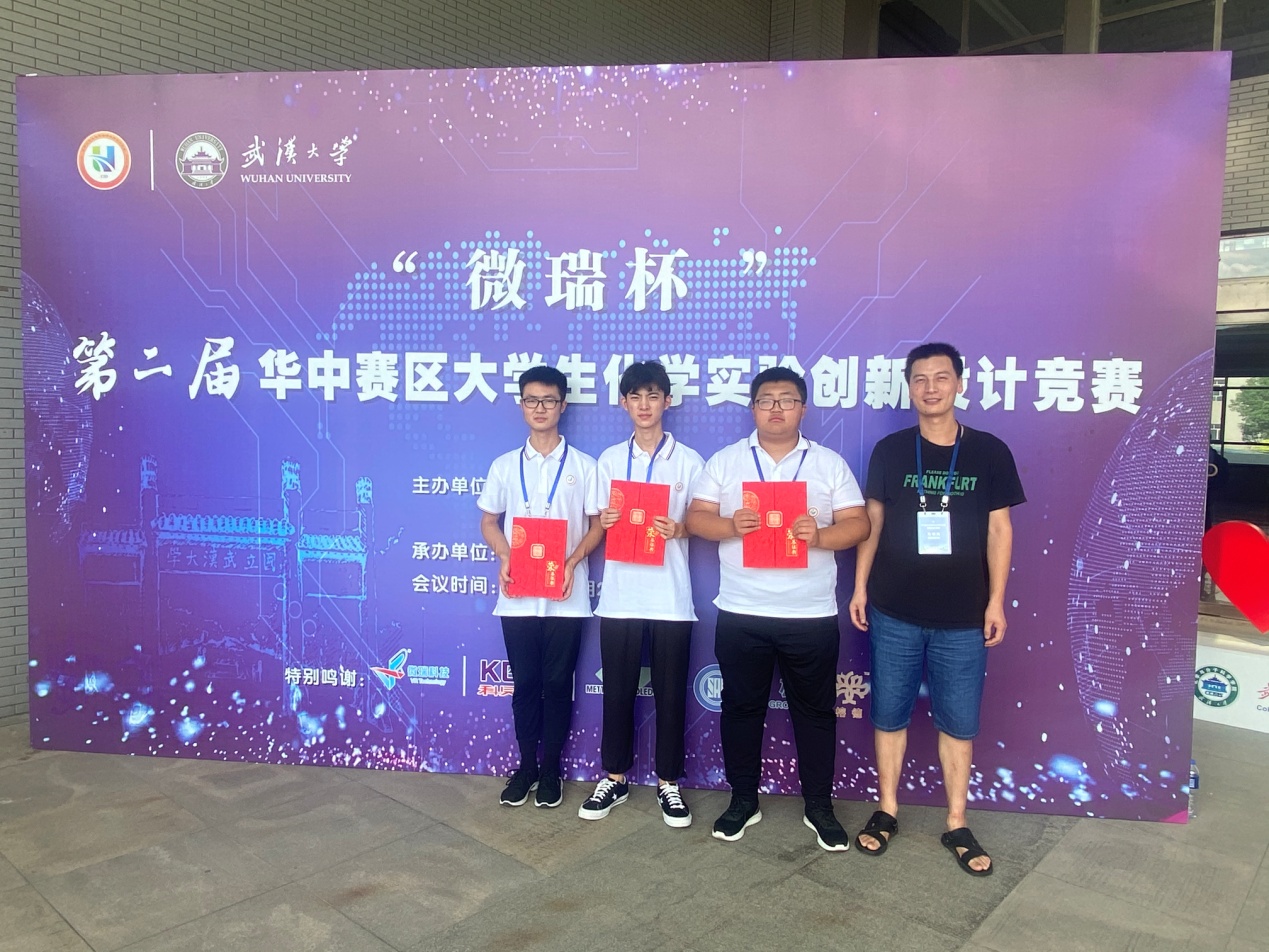 7月22日-25日,“全国第二届大学生化学实验创新设计竞赛”华中赛区复赛在武汉大学顺利举行,并圆满落幕。williamhill官网选派的2支学生实验创新设计团队,在裴强博士、马献涛博士率队精心指导下,精彩展演,沉着应答,出色表现,斩获佳绩,分别获得全国大赛华中赛区二等奖。