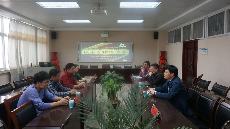 3月28日,信阳师范学院williamhill官网与北京一轻研究院、天津金汇药业集团、河南甾体生物科技有限公司校企合作洽谈会在化学实验楼407召开,北京一轻研究院院长甄西合(93级化学校友)、天津金汇药业集团董事长程绍国(83级化学校友)与化院领导班子一起参加了座谈,会议由化院党委书记郭鹏主持。